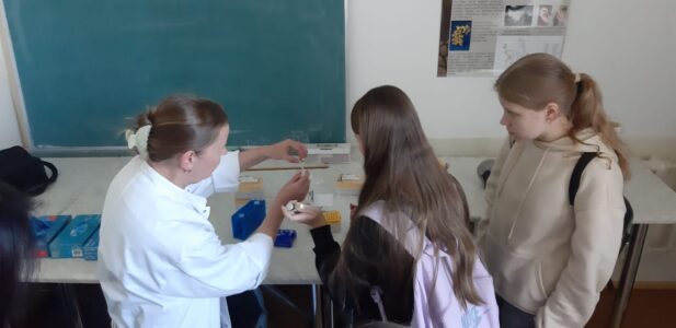 Ekskursijas pa BMC ietvaros Alise Pokšāne nolasīja lekciju par tēmu “Seno Latvijas teritorijas iedzīvotāju ģenētiskā izpēte, izmantojot arheoloģisko kaulu materiālu” Rīgas 41. vidusskolas 10b klases skolēniem.
